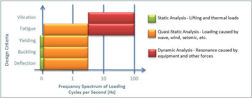The applicable load frequency ranges and the associated design criteria for these three types of analysis are presented in Figure 4 and Table 1 (below).
