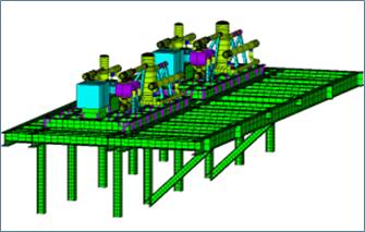 The recommended approach for dynamic analysis is to prepare an accurate Finite Element (FE) model of the dynamic load, skid, and affected structural members. Over the years, Wood has developed a number of specialized techniques to ensure accurate FE models. The approved model, combined with the dynamic forces, is used to identify local resonances and evaluate possible solutions.