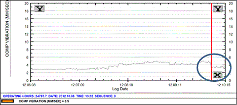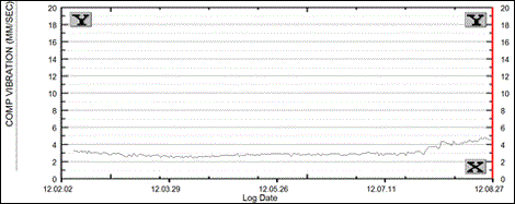 “I am seeing a clear compressor vibration increasing trend. Current level of vibration is not very high but a trend is obvious. I do not see any speed/load change on this unit.”