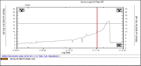 | Observation/Action | Unit 1 power turbine oil filter differential pressure (tag DPT-301) has been trending up and reached 11 psi on November 19. |